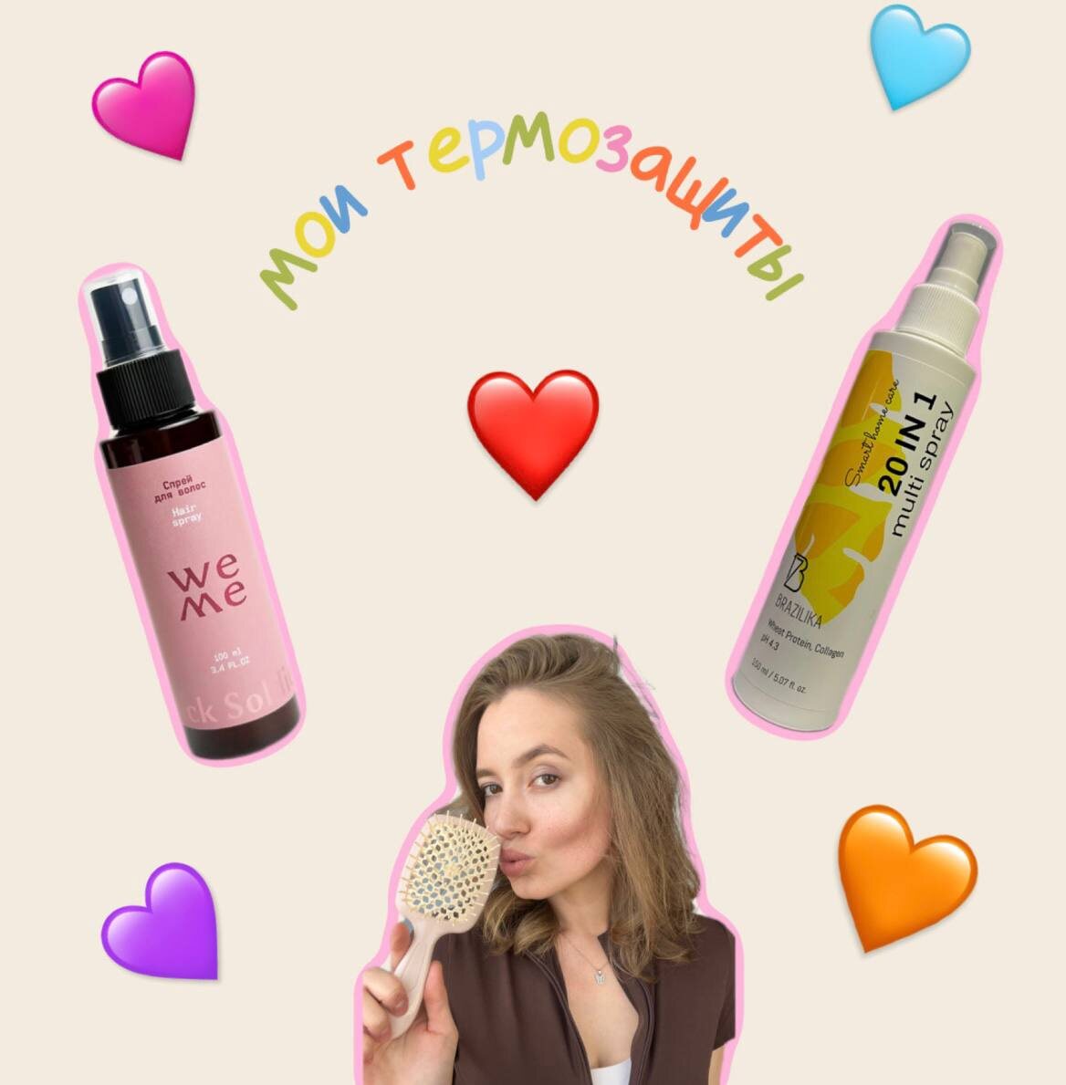 Мои термозащиты 🤪 В моем уходе всегда 2-3 термозащиты, люблю чередовать, так мне удается пробовать что-то новое, но и пользоваться уже чем-то проверенным 😊 Но в этот раз не так, у меня в уходе две новых для меня термозащит и обе они мне нравятся, не смотря на отзывы на маркетплейсах 🤣 Бренд Brazilika славится своими бессульфатными шампунями, но я решила попробовать их спрей 20в1, в составе есть кондиционеры, пленки, смягчающие эмульгаторы, есть ухаживающие компоненты. Единственное, что мне в нем не нравится - это аромат Баккара руж (просто переслушала этот аромат, и он мне разонравился). Бренд WeMe для меня новый, я посмотрела состав и сразу же решила, что хочу его попробовать. Спрей-уход для волос - на втором месте стоит BSF butter ( энтомологическое масло) - восстанавливает защитный слой, придает блеск, облегчает расчесывание, дальше идут пленки, другие ухаживающие компоненты. Что я заметила? Что этим средством легко переборщить, поэтому так много плохих отзывов. Но если нанес