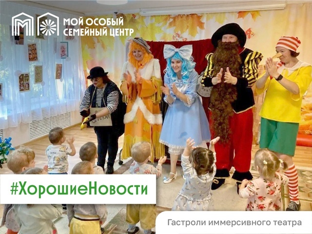 В особом семейном центре «Доме Детей» уже несколько лет успешно реализуется проект по иммерсивным спектаклям. Но в этом году наша театральная труппа вышла на большую сцену – начала гастролировать по другим учреждениям соцзащиты. 5 сентября наши артисты посетили ЦССВ «Центральный» с интерактивным представлением «Приключения Буратино». «Каждый наш спектакль – это не просто увлекательная история и виртуозная игра актёров, в сказке обязательно принимают участие зрители: и дети, и родители. Мы всегда делаем акцент на том, что мы именно семейный театр. Мамы и папы, мальчишки и девчонки постоянно оказываются на сцене и вовлекаются в сказочный сюжет, взаимодействуя и друг с другом, и с любимыми героями. Вместе мы выполняем сложные задания, без которых невозможно одержать победу над отрицательными персонажами, а после веселимся и танцуем», – делится учитель-дефектолог Александра Афанасьева, исполнившая роль Мальвины. Такие интерактивные постановки не только доставляют огромную радость детям, но
