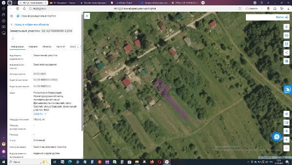 Название: Категория земель: земли населенных пунктов; Кадастровый номер: 52:32:1000005:2256; Площадь земельного участка: 742 кв.м.; Вид