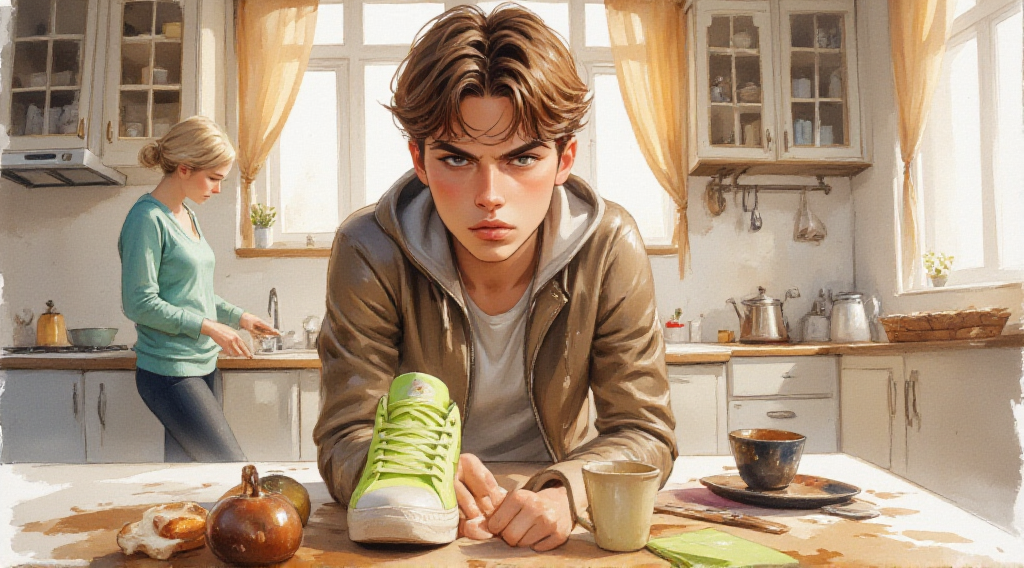 Артём вошёл на кухню. Увидел мать, застыл. Я встала, подошла к нему, взяла за руку.
