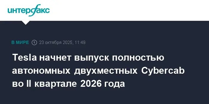 Автономные электромобили Tesla Cybercab выйдут на рынок уже в 2026 году