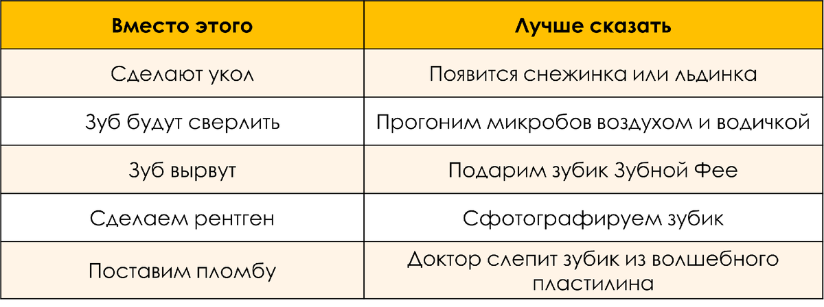 Многие взрослые до сих пор помнят свой детский страх перед стоматологом. Но сегодня всё иначе — современная детская стоматология умеет превращать лечение в игру. Главное — помочь малышу адаптироваться и не пугать его заранее. Не стоит заострять внимание на визите. Сообщите о нём между делом, спокойно и в игровой форме. Например: Так ребёнок воспринимает поход не как что-то страшное, а как обычное событие. Лучше говорить об этом за день-два — чтобы малыш успел привыкнуть к идее, но не начал волноваться. Дети воспринимают речь буквально, поэтому важно избегать фраз со словом «не» и взрослых терминов. Например: Такие формулировки превращают лечение в игру — именно так поступают детские стоматологи. 💡 Лучше, если ребёнка сопровождает спокойный взрослый — дети чувствуют тревогу родителей. 💡 Приходите чуть заранее, чтобы малыш освоился в клинике. 💡 Возьмите любимую игрушку или книжку — это поможет расслабиться. 💡 Дайте ребёнку время привыкнуть к обстановке в клинике — поиграть, порисоват
