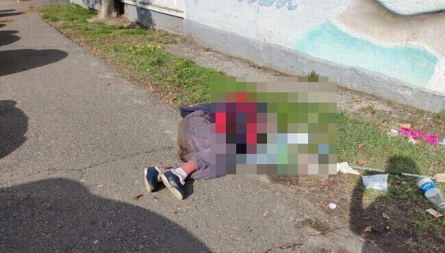 В Новороссийске более суток у ворот горбольницы лежит бездомный мужчина, который не подает признаков жизни