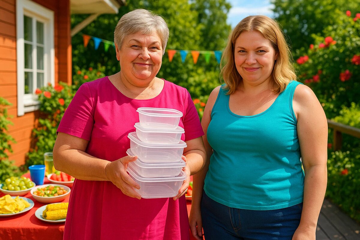 В руках у Валентины Петровны вместо привычного угощения, которое обычно приносят гости, была целая охапка пустых пластиковых контейнеров разных размеров, бережно сложенных друг в друга. Светлана держала в руках лишь свою сумочку, на её лице читалось легкое превосходство.