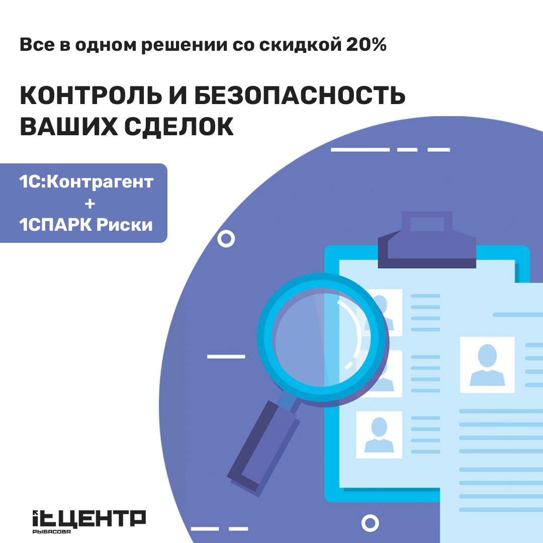 - Умный поиск по любым параметрам И сейчас — лучший момент подключиться! Акция до 31 декабря 2025 года. Тариф «1С:Контрагент + 1СПАРК Риски» доступен на 20% дешевле, чем покупка этих сервисов по отдельности! Итоговая цена: всего 7 800 рублей (вместо 9 750₽). Экономьте деньги, время и нервы одновременно. Свяжитесь с нами для бесплатной консультации и получите план авт