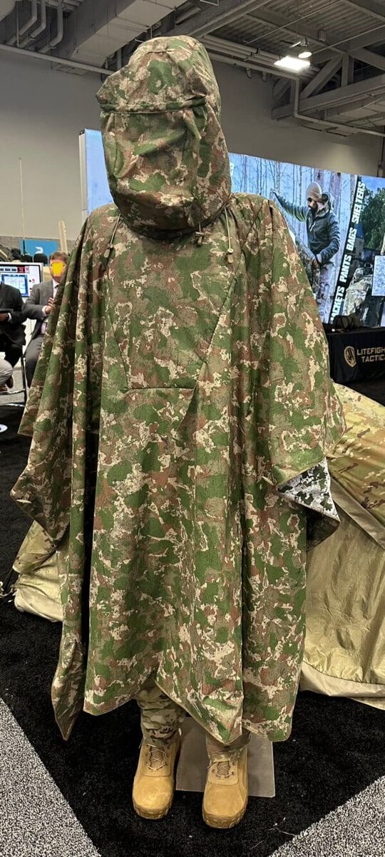 На выставке AUSA 2025 компания Stealth Products Group (дочернее подразделение LiteFighter Gear) продемонстрировала индивидуальное маскировочное укрытие с мультиспектральными свойствами. Продукт уже проходил оценку в 25-й пехотной дивизии в условиях Гавайев и готовится к тестированию в 82-й воздушно-десантной дивизии. Технические характеристики: Размер: 170 × 262 см Вес: 0.9 кг Технология: ZIRO Mitigation Technology Диапазоны маскировки: видимый свет, ближний ИК, средневолновой ИК, длинноволновой ИК. (скрывает от ПНВ и тепловизора) Конструктивные особенности: Реверсивный камуфляжный рисунок Дышащий материал с теплопоглощающими вставками в зонах повышенного тепловыделения Увеличенный капюшон для использования со шлемом Варианты полного и частичного закрытия лица Возможность соединения нескольких укрытий для создания групповых укрытий Эксплуатационные преимущества: Компактность транспортировки Односторонняя видимость (наружу) Сохранение воздухопроницаемости при полной маскировке Вопрос д
