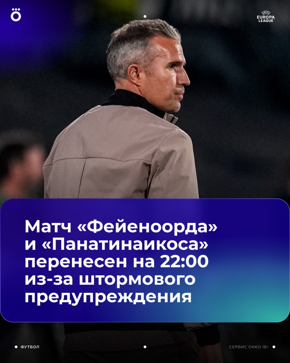 Из-за предупреждения местных властей о серьезном ухудшении погодных условий сегодняшний матч между «Фейеноордом» и «Панатинаикосом» переносится уже во 2-й раз ⚡️ В Роттердаме — штормовое предупреждение 🌪