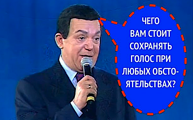 - "Я бы ещё добавил, что я всю жизнь курю. Вот не мешает, не от... не мешает.": Кобзон сразу же дополняет картину, добавляя неожиданный и, казалось бы, противоречивый факт. Это не только честно, но и усиливает впечатление его уникальности и силы голоса. Он не пытается скрыть эту привычку, а наоборот, использует её, чтобы показать, что его талант и подготовка преодолевают даже такие факторы.