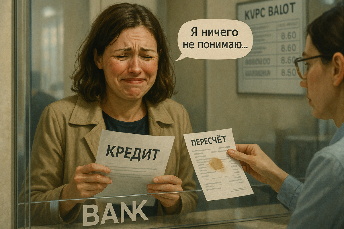 Узнаваемая картина. Договор в валюте, доходы в рублях. Курс скачет, банк пересчитывает в свою пользу, присылает требование об ускорении возврата и сразу считает все оставшиеся платежи на текущий день. В выписке — корректировка валютного долга и пени, в которых легко утонуть. Коллекторы пишут каждый день, иногда намекают, что будут «перевод долга валютный контроль» и «переуступка валютного долга» иностранному фонду — хотя для вас это ничего не меняет, кроме адресата писем. Добавьте человеческие ошибки: менеджер путает даты, в уведомлении нет данных, как пересчитать курс валют, банк учитывает комиссию как просрочку.