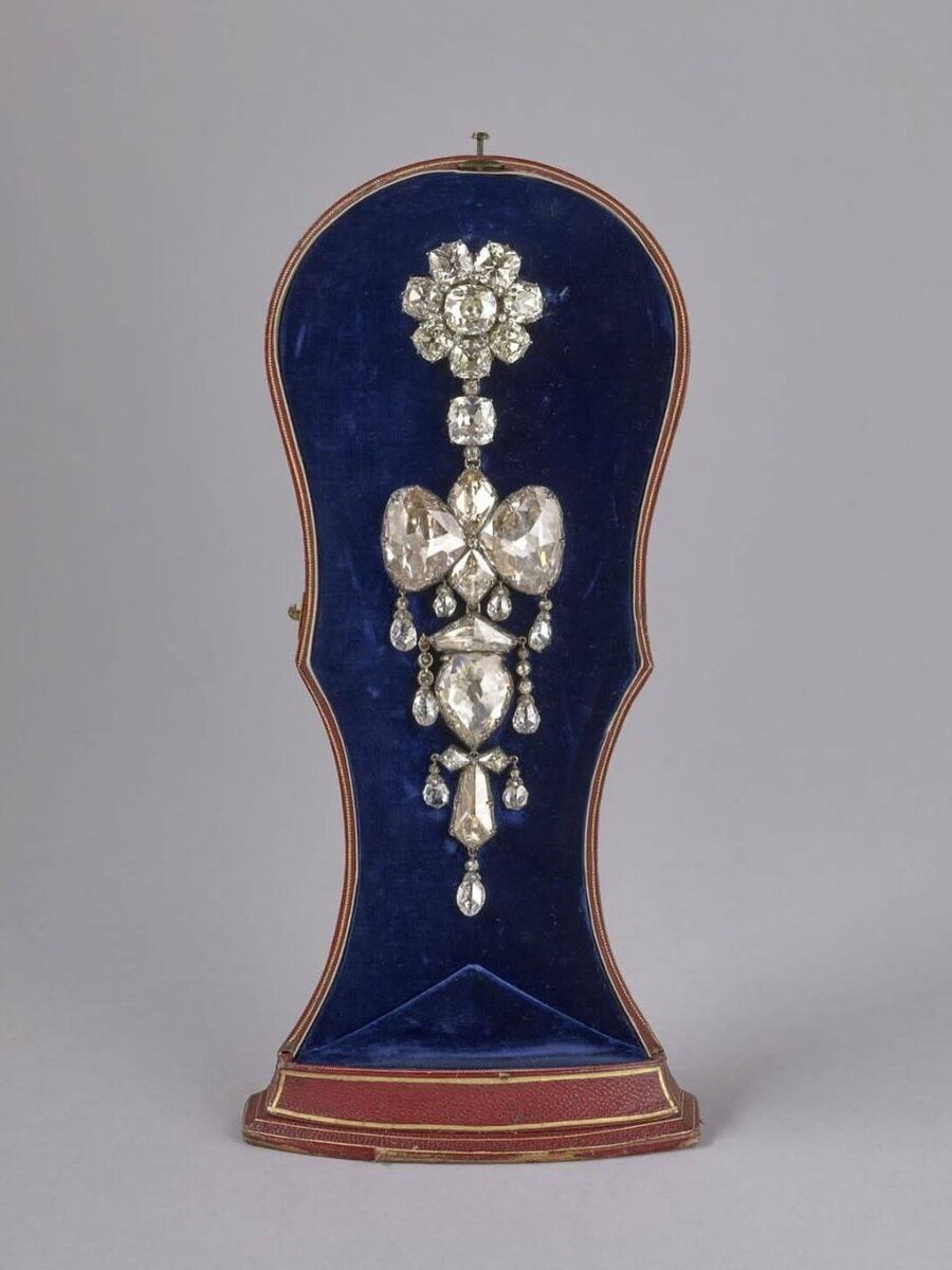 Среди похищенных из Лувра драгоценностей брошь-реликварий — одна из самых интересных с точки зрения истории ее бриллиантов, которые воплощают связь между разными эпохами Франции. Хотя сама брошь изготовлена в 1855 году, миндалевидные камни когда-то были серьгами Марии-Антуанетты, а бриллианты в центре «Король-Солнце» Людовик XIV носил как пуговицы. Они стали свидетелями расцвета Версаля.