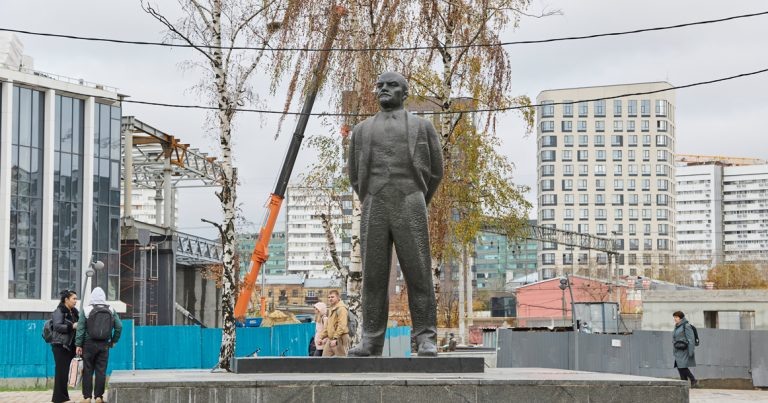 Краевед рассказывает об истории установленного здесь памятника Ленину литовского архитектора Витаутаса Чеканаускаса: «Он соавтор проекта вильнюсского района Ладзинай, построенного в 1960-е. В конце 1970-х в его модернистских кварталах снимали часть фильма “Приключения Электроника”, поэтому здешний памятник Ленину у нас называют Ильич Сыроежкин».