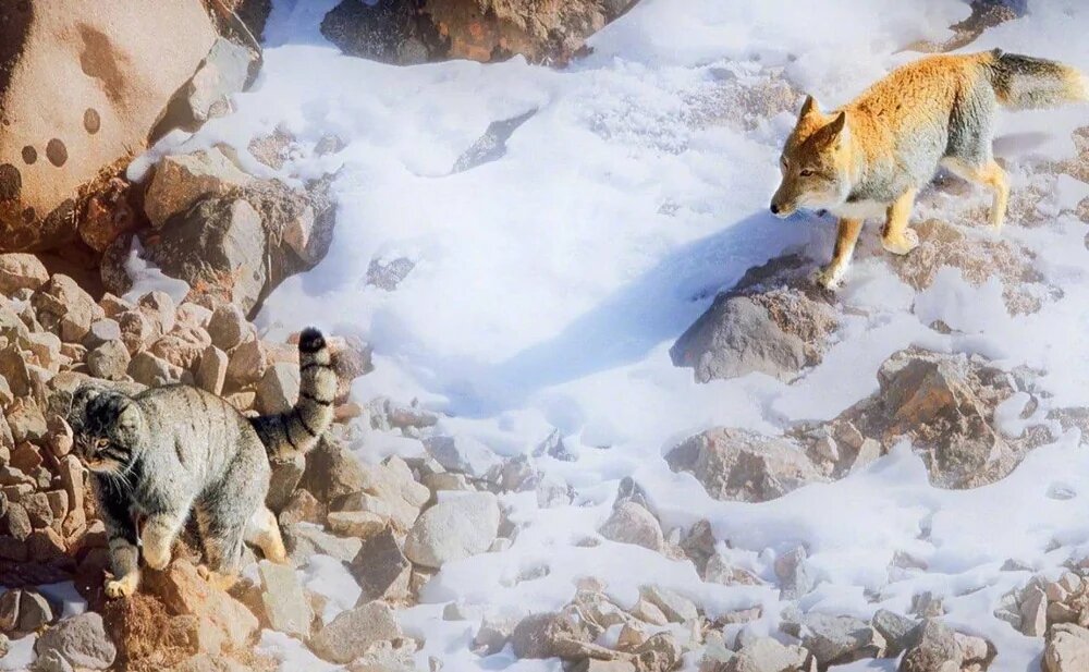 Тибетские лисы нередко провоцируют драки с другими животными. Однако они часто проигрывают в схватках и сбегают. Так случилось и в этот раз. В Китае засняли, как тибетская лиса зашла на территорию манула и еле унесла ноги. Напиши своё мнение, а я обязательно прочитаю 👀