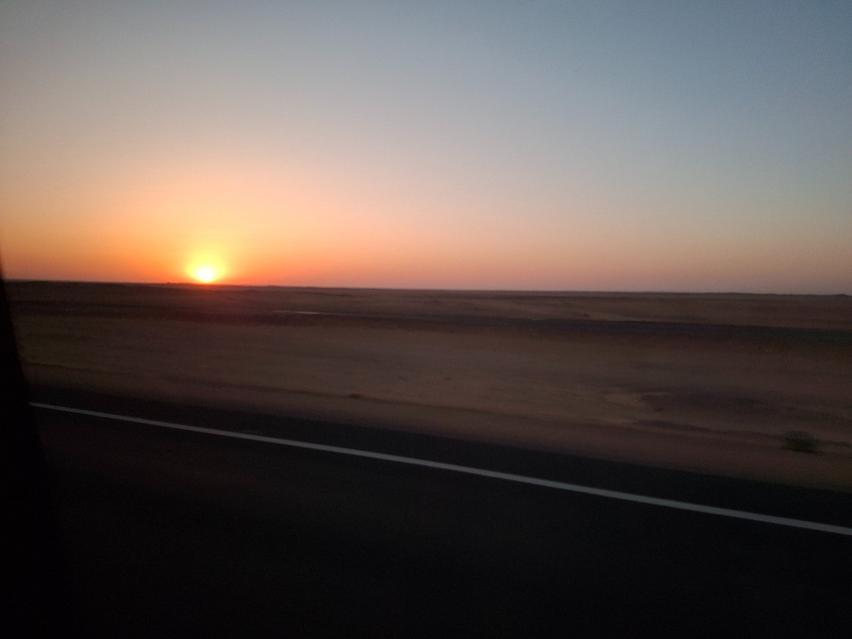 Встали в 3 часа ночи. В 3-30 был организован чай, и едем на экскурсию к храмам Абу-Симбел. От Асуана это 285 км. Храмы находятся недалеко от египетско-суданской границы. Ехали 4,5 часа.