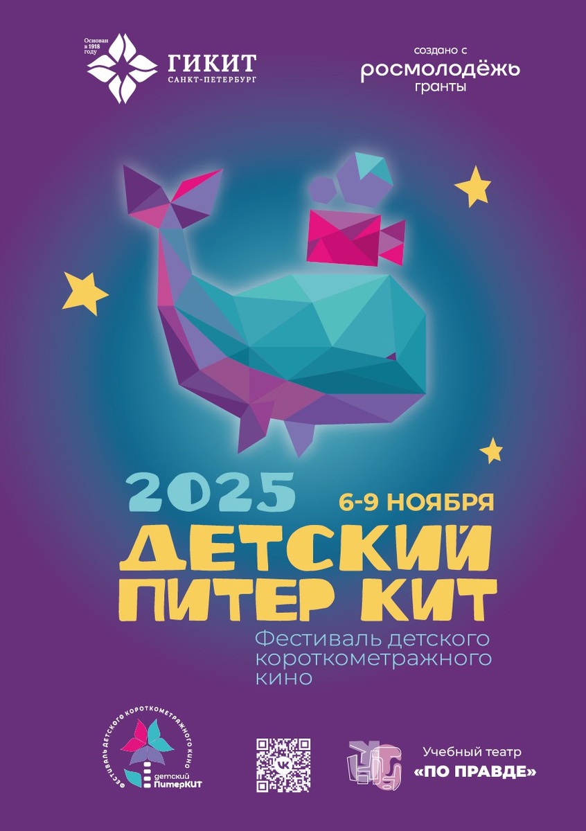 Внимание, юные кинематографисты!🎬🍿 С 6 по 9 ноября в Санкт-Петербурге пройдёт VI Всероссийский фестиваль детского короткометражного кино «Детский ПитерКиТ»! 📌Это площадка для юных дарований, где ребята могут заявить о своих талантах, узнать много нового на мастер-классах от экспертов в киноиндустрии, а также найти команду мечты. В этом году фестиваль бьёт все рекорды: 499 заявок из 45 регионов России и 3 стран! Публикуем календарный план фестиваля. Сохраняйте себе и делитесь с друзьями! ❗ Вход только по электронному пропуску. Он нужен каждому, включая детей. ⚪Регистрируйся 🟣Получи пропуск
