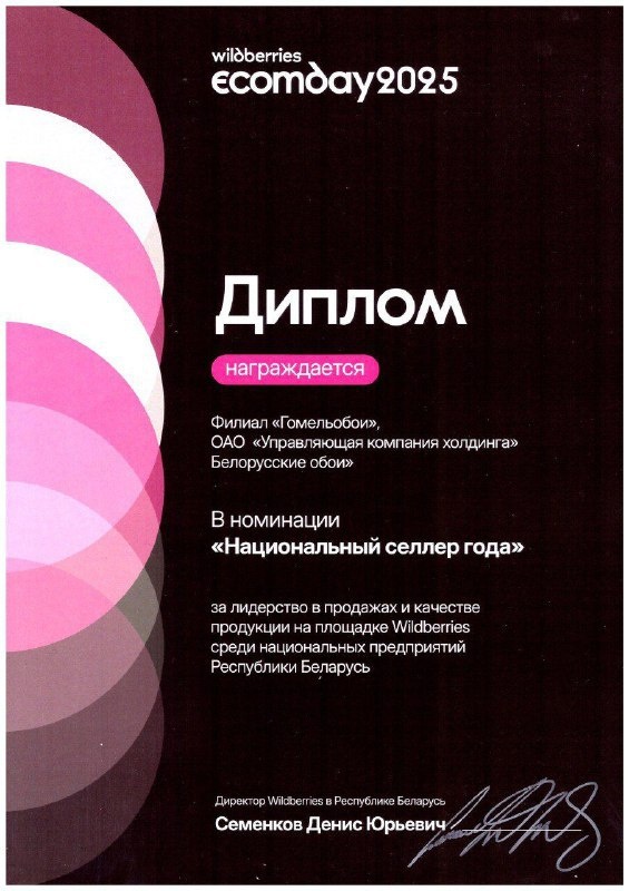 За лидерство в продажах и качество продукции на площадке Wildberries среди национальных предприятий Республики Беларусь.