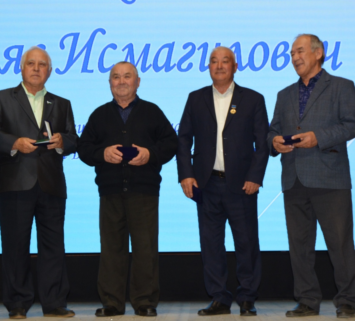На этом снимке запечатлены четверо хорошо известных ветеранов труда, внесших свой достойный вклад в развитие тех сфер деятельности в районе, которым они посвятили многие годы своей жизни. Ильяс Исмагилович Такалов большую часть своей трудовой биографии посвятил местной печати, пройдя в редакции районной газеты творческий путь от фотокорреспондента до редактора. Немного работал на других, главным образом выборных должностях, после чего опять возвращался в редакцию. Весь трудовой путь Басира Саитбатталовича Максютова связан с сельским хозяйством. Он работал на разных должностях в крупнейшем в районе совхозе «Башкирский». И во многих былых производственных достижениях этого уже «канувшего в Лету» хозяйства, была доля и его труда. Рамиль Хурматович Ишимбетов – педагог и по духу, и по призванию. Правда, один период его жизни был связан с партийной работой, но потом он вернулся к любимому делу. А на завершающем этапе свой педагогической деятельности возглавил коллектив Зилаирской коррекционн