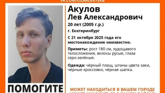 В Каменске-Уральском загадочно исчез двадцатилетний Лев Акулов, его не могут найти с 21 октября. Сообщается, что, покидая дом, молодой человек взял с собой крупную сумму денег и драгоценности. Его автомобиль обнаружили рядом с аэропортом.
