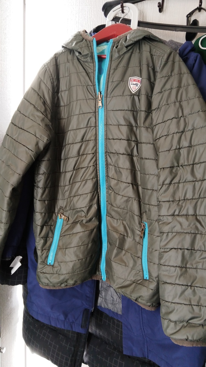 У моей подруги трое детишек и все мальчишки. Так вот старший серьезно занимается футболом. Намедни он собрался на сборы в другой регион. А так как сейчас почти везде наступило межсезонье, мама разволновалась, что нет куртки, которая бы прикрывала у ребёнка всё, что находится ниже спины. Посовещаясь с мамочкой, я решила сгонять в магазин вторичного потребления и посмотреть для мальчишек верхнюю одежду. Тем более они растут не по дням , а по часам, да и мальчишки всё таки! У них всё не слава Богу, то рукав оторвется, то карман, то пятно посадят на всю спину. Ну, у кого дети, тому это знакомо. А за бешеные деньги одежду покупать, мы решили, что нецелесообразно. И если одежда придёт в негодность, будет не так обидно её выкинуть. Вобщем поехала я одна, связь держали по видео. Но где покупки детям, там покупки и для нас. Вобщем обо всём по порядку. 1. Куртейка двусторонняя. Взяла. Футбол на стадионе гонять самое то. 2. Среднему перепала курточка на флисовой подкладе от Bench. Достойный