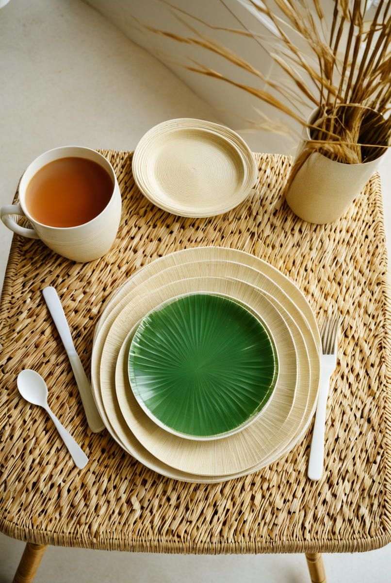 Для закусок и легких блюд прекрасно подойдут плоские тарелки из бамбука или пальмовых листьев. Приборы (деревянные вилки, алюминиевые ложки) также выбираются по типу еды. Главное — обеспечить практичность, полную безопасность и минимальный вред окружающей природе.