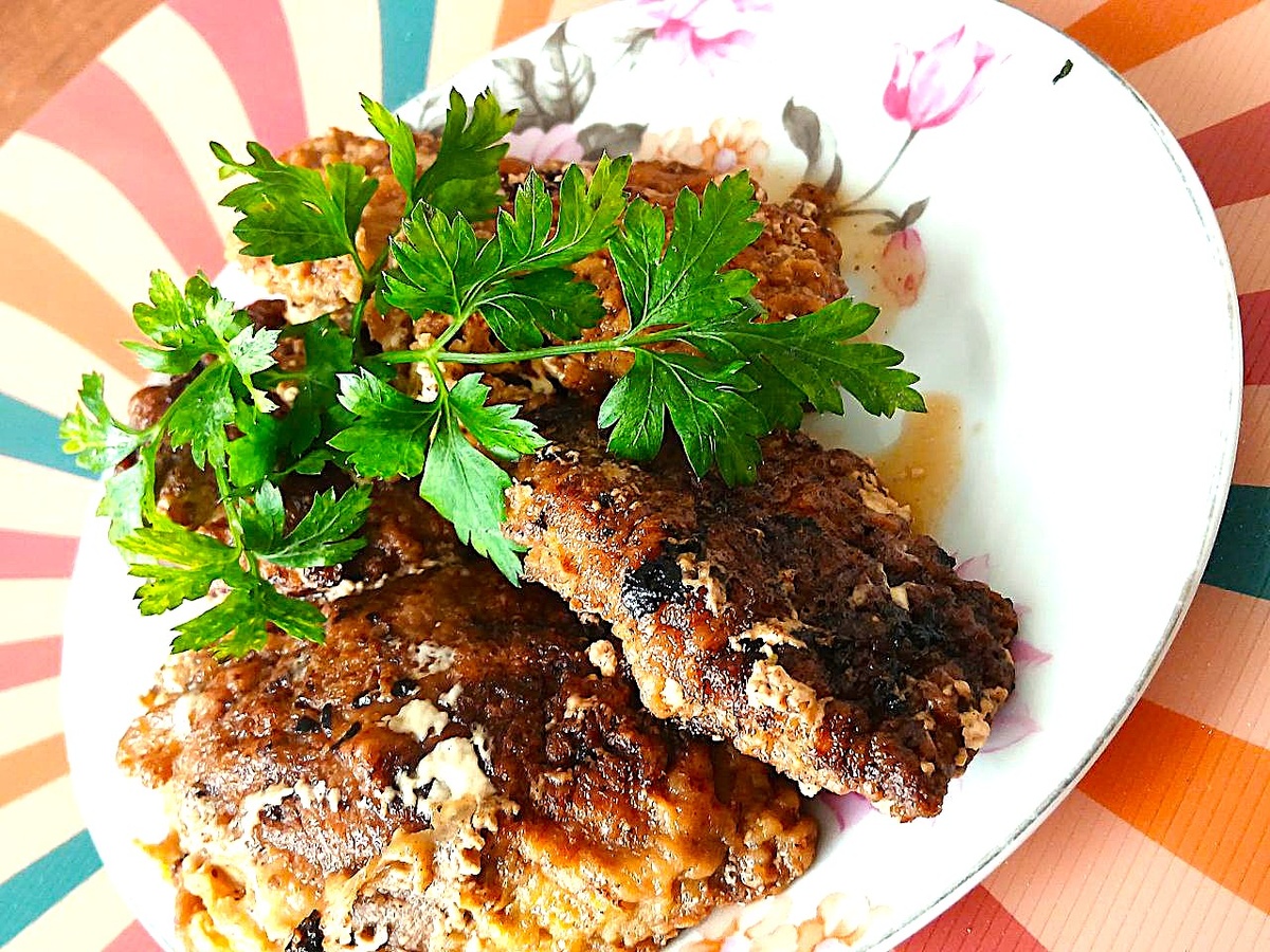 Эти отбивные превращают печень в блюдо для ежедневного и праздничного стола. Куски печени толщиной ~1 см становятся особенно нежными, если слегка отбить их между слоями плёнки — так мясо не разваливается и сохраняет соки. Панировка из муки и яйца даёт аппетитную золотистую корочку, а краткая обжарка на раскалённом масле — насыщенный вкус. Если отбивные получились чуть пережаренными, спасёт простая финишная обработка: залейте их разведённой сметаной и потушите несколько минут — печень станет мягкой и ароматной, а соус — нежным дополнением.