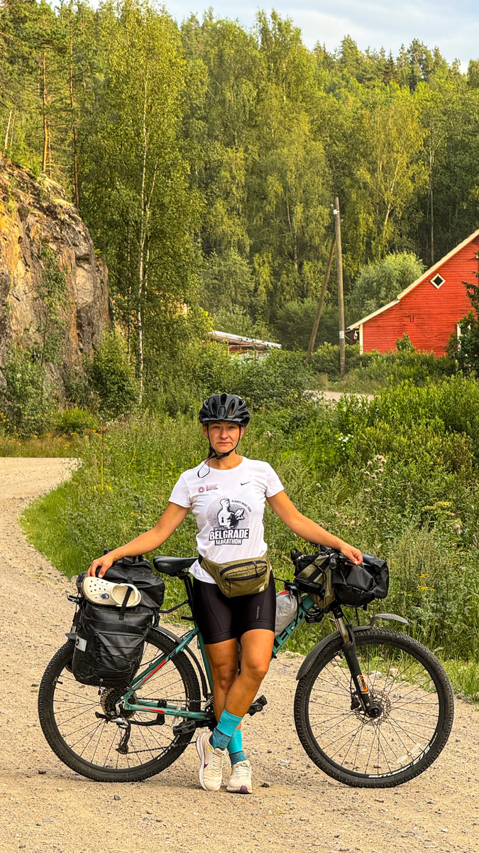 Вообще, мы были очень возмущены, когда по гравийной дороге со скоростью света проносились машины. Почему совершенно не подумать о других участниках дорожного движения. И мало того, что это, порой, бывало в 15-20см от велосипеда на широченной дороге, так еще после них вся эта поднятая пыль оседала в глазах, в носу и во рту, я уже молчу о том, что мы с ног до головы были покрыты этим песком.