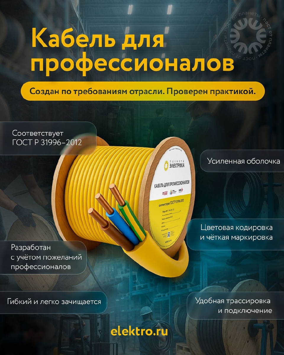 Кабель для профессионалов «Планета Электрика» 👷 Сочетание качества, удобства и точности — то, что ценят специалисты. Производится по стандартам, проверен практикой, создан для стабильной работы на любом объекте 😎 Профессионалы выбирают надёжность. Профессионалы выбирают «Планета Электрика» ✔️ Весь ассортимент кабеля «Планета Электрика» #ПланетаЭлектрика #кабельдляпрофессионалов #elektroru #электромонтаж