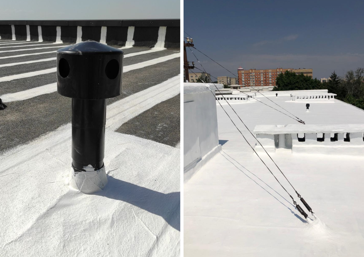 Покрытие формируется по-настоящему прочное, долговечное, монолитное покрытие без швов, способное выдержать подвижки конструкций, многократные циклы нагрева и охлаждения и влияние ультрафиолетового солнечного излучения.