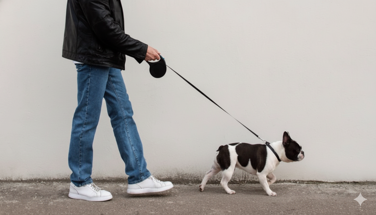 - Короткий поводок: держите его не натянутым, но с возможностью корректировки движения.