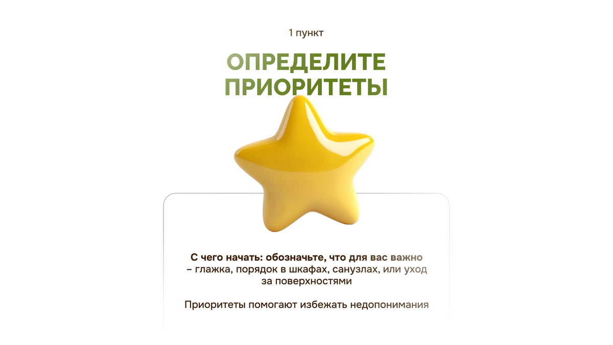 Понимание приоритетов помогает домработнице грамотно распределять время и выполнять задачи именно так, как вы ожидаете.