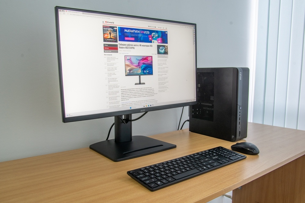 Линейка PRO у MSI традиционно ориентирована на корпоративную среду: стабильные платформы, длинные жизненные циклы, упор на безопасность, прогнозируемая акустика и простота обслуживания. PRO DP80 MP — настольный ПК классического форм фактора с компактным корпусом и возможностью горизонтальной или вертикальной установки. В нашем тесте мы оценивали его как рабочую станцию для типичных офисных сценариев: офисные пакеты, браузер с десятками вкладок, мессенджеры, видеоконференции, удаленный доступ, работа с базами данных, простая обработка изображений и базовый no code/low code софт. Отдельно смотрели на вопросы управляемости, сетевых подключений и физической безопасности — то, что на практике часто важнее «синтетической» скорости.
