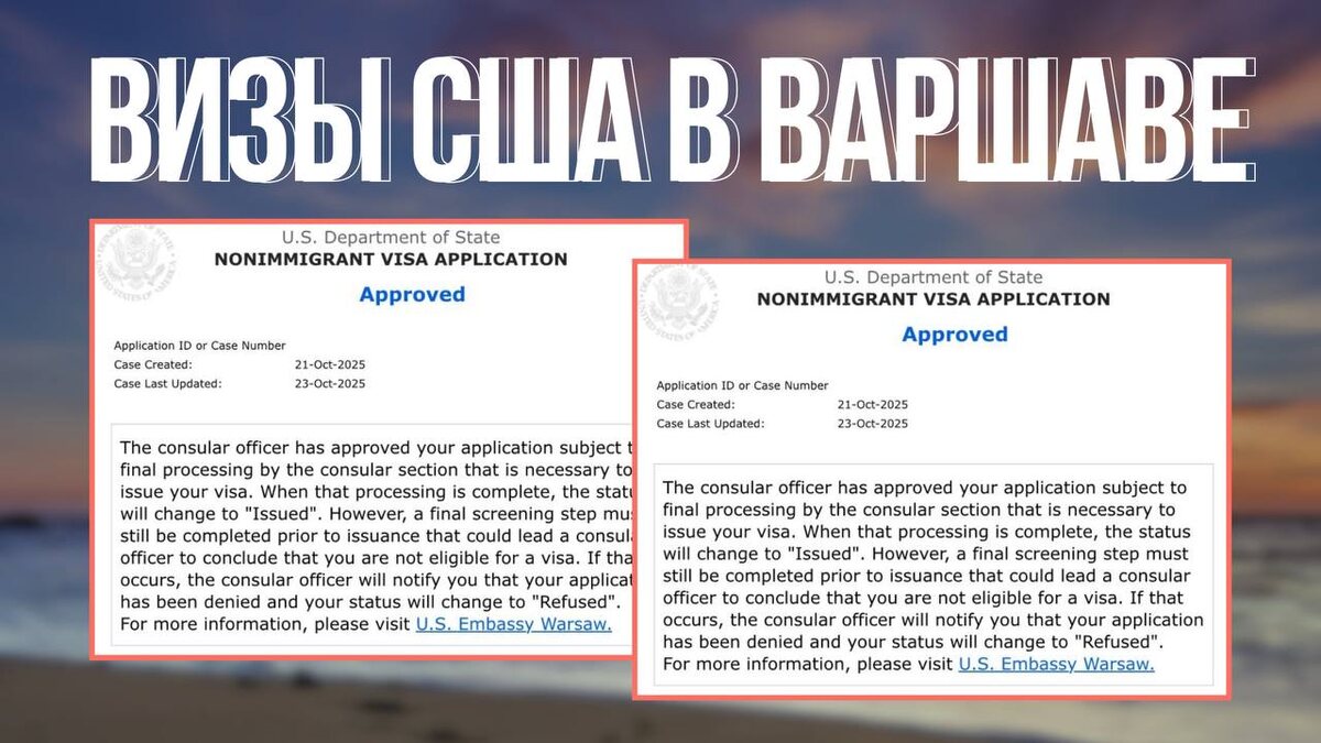 Визы США в Варшаве 🇺🇸 23 октября: одобрение туристических виз США в Варшаве гражданам РФ. Собеседование было назначено до последних изменений. Кейс: семейная пара. Женщина работает в сфере маркетинга. Мужчина является руководителем компании. Клиенты планируют поехать на Рождество и Новый год в Нью-Йорк, а потом уехать на Гавайи. За последние 5 лет было посещено 10 стран. Вопросы консула: – Какая цель вашей поездки? – Что собирается посетить в США? – Чем вы занимаетесь? – Были ли вы ранее в США? Мы также открывали Клиентам визы шенген для прохождения собеседования в Европе. Получить визу США ⬅️ Записаться на консультацию ⬅️ #кейс #виза_сша