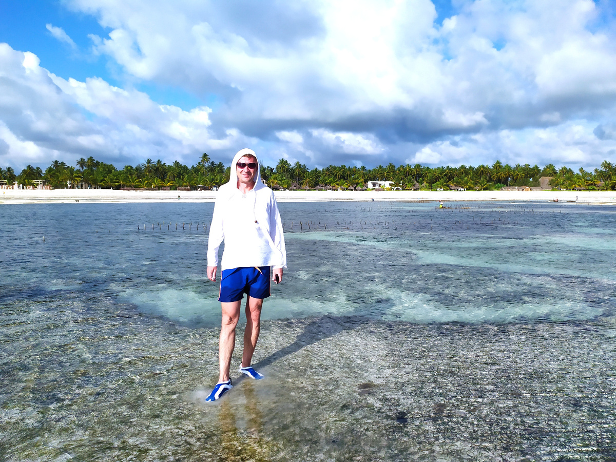 Сегодня постараемся провести день более продуктивно и интересно! После завтрака,как раз пока отлив,пойдём на риф и будем искать морских звёзд! Здесь всё дно просто усыпано морскими ежами,поэтому обязательно нужно одевать кораллки!И внимательно смотреть под ноги!Хорошо,что вода прозрачная как стекло и всю живность очень хорошо видно!Да к тому же вода просто горячая,солнце палит и она быстро нагревается! А вот и первые морские звёзды! Они здесь разные по цвету,от коричневых до зелёных! Чем дальше идём от берега,тем их становится всё больше и больше! И виды тут -космос!Ежи,кораллы,морские огурцы и звёзды,камни и волны на горизонте!Очень интересно тут гулять!Только надо бы намазаться кремом и закутаться в одежды! Мы конечно в полном восторге от этих пейзажей!Занзибар-ты прекрасен! Нафоткались со звёздами.Не волнуйтесь,ни одна звезда не пострадала! Удивительно красивые создания.Если взять их на руку,то можно почувствовать как они передвигаются по ладони своими щупальцами! Точно также к