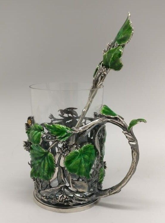 Подстаканник ВАЛЕРИЯ ГОЛОВАНОВА. Подстаканник Липовый цвет с ложкой. Подстаканник ВАЛЕРИЯ ГОЛОВАНОВА. Подстаканник Липовый цвет с ложкой. Ювелирная Арт-Мастерская Валерия Голованова известна с 2000 годов своими эксклюзивными работами, особенно серебряными ложками и подстаканниками. Работы выполняются исключительно вручную, что придает жизнь каждому ювелирному изделию. Валерий Голованов - выдающийся ювелир, его работа есть в Оружейной Палате. Голованов Валерий Ювелирная Арт-Мастерская, Стоимость лота: 189 000,00 ₽ Подробнее на нашем сайте