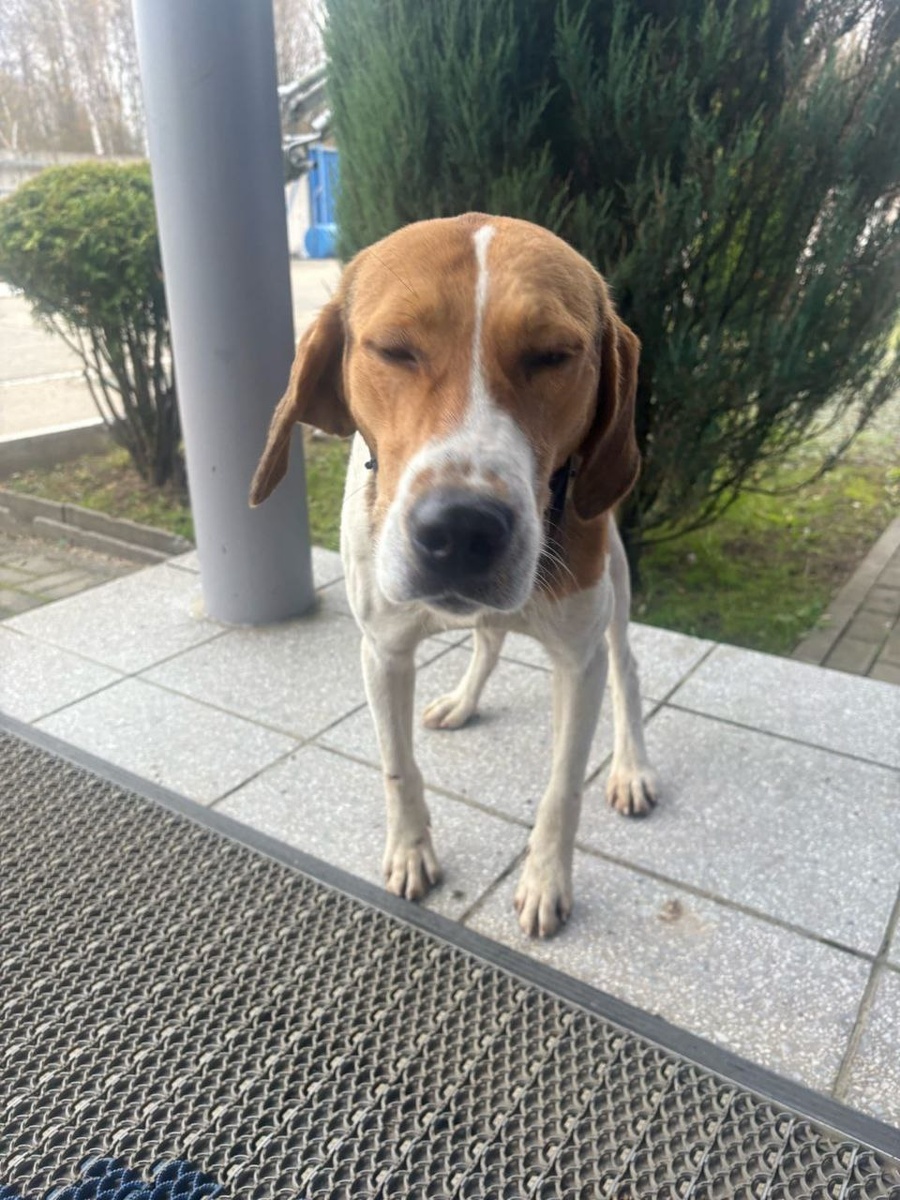 Здравствуйте. На Газпром (Дивасы) второй раз за две недели прибилась собака, эстонская гончая, худой, кабель, ласковый, голодный!