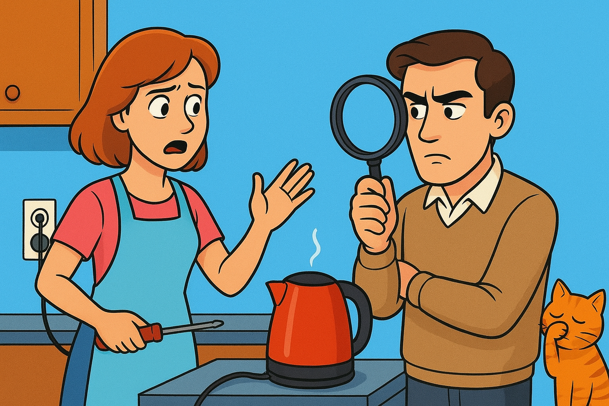 Однажды прекрасным утром, когда птицы пели о любви, а солнце ласкало лицо, нашей героине Марине пришла в голову мысль. Мысль была настолько же гениальная, насколько и внезапная: «А не починить ли мне вот эту самую розетку на кухне, которая уже полгода подмигивает темнотой?» Муж, Алексей, как раз в это время с умным видом ковырялся в автомобильном форуме, пытаясь диагностировать странный стук в заднем левом колесе. Марина, недолго думая (в чем, собственно, и была главная ошибка), вооружилась отверткой, YouTube-роликом «Электрика для чайников за 5 минут» и безрассудной храбростью. Процесс напоминал саперную работу на минном поле. Провода, которые, как оказалось, бывают разного цвета (сюрприз!), искры, кратковременно вернувшаяся молитва в атеистическое сердце... Но чудо свершилось! Свет зажегся, чайник ожил и радостно забурлил. Гордая, как римский император после завоевания Галлии, Марина пошла доложить о победе супругу. — Алеш, я розетку починила! — возвестила она, сверкая глазами. Алекс