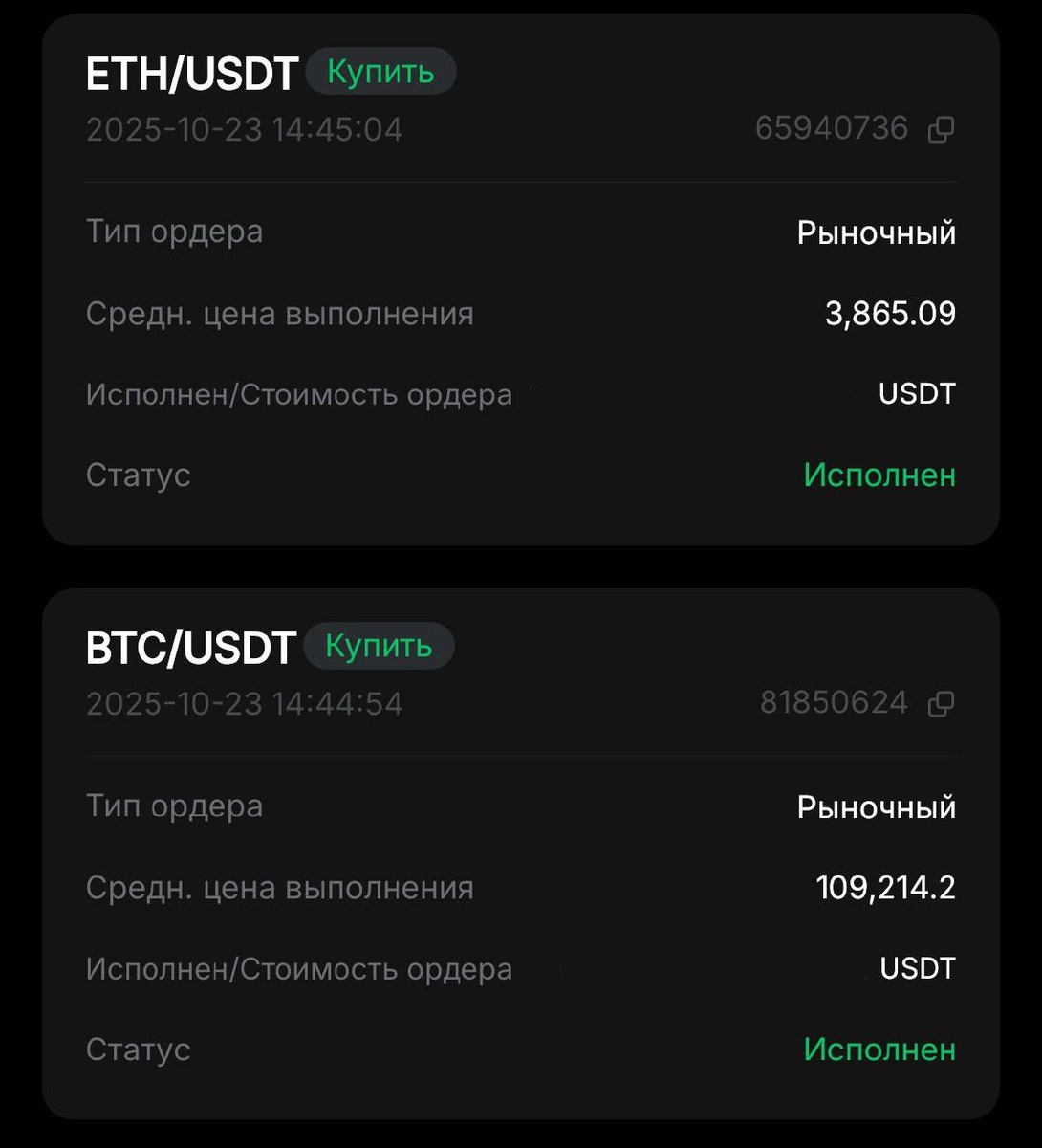 🟢 Купил BTC по 109 214 и ETH по 3 865