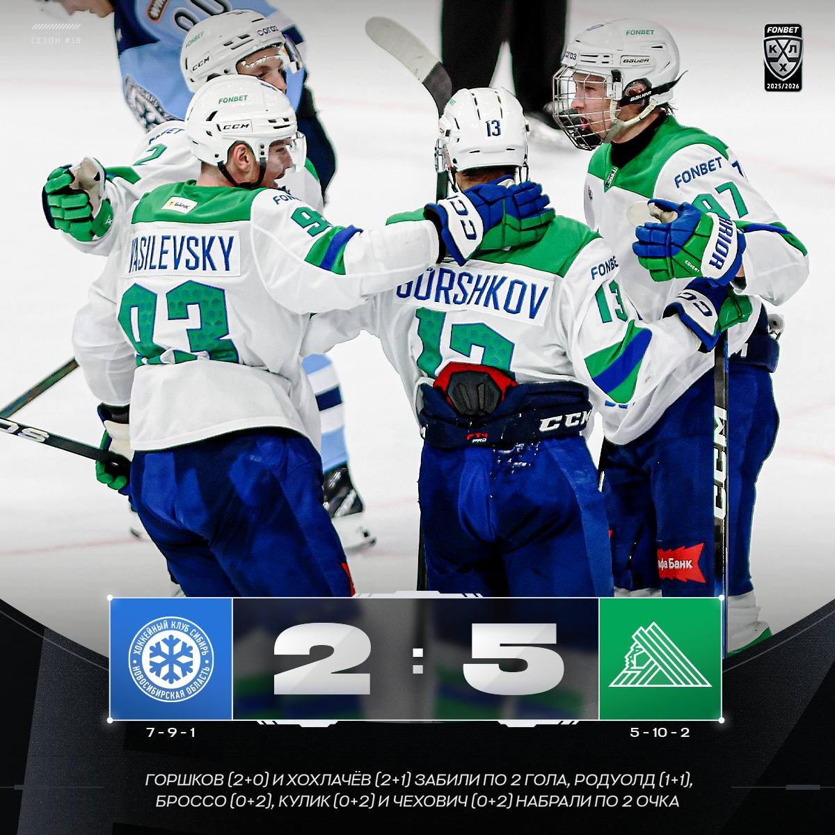 💚 Дубли Горшкова и Хохлачёва принесли «Салавату Юлаеву» вторую победу над «Сибирью» в сезоне!