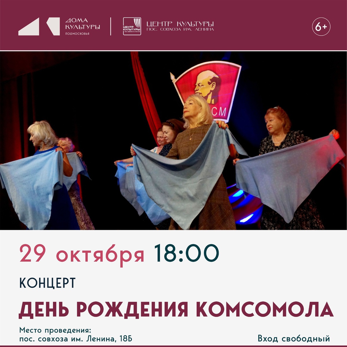 Центр культуры поселка совхоза им. Ленина приглашает всех на праздничную концертную программу, посвященную Дню Комсомола!