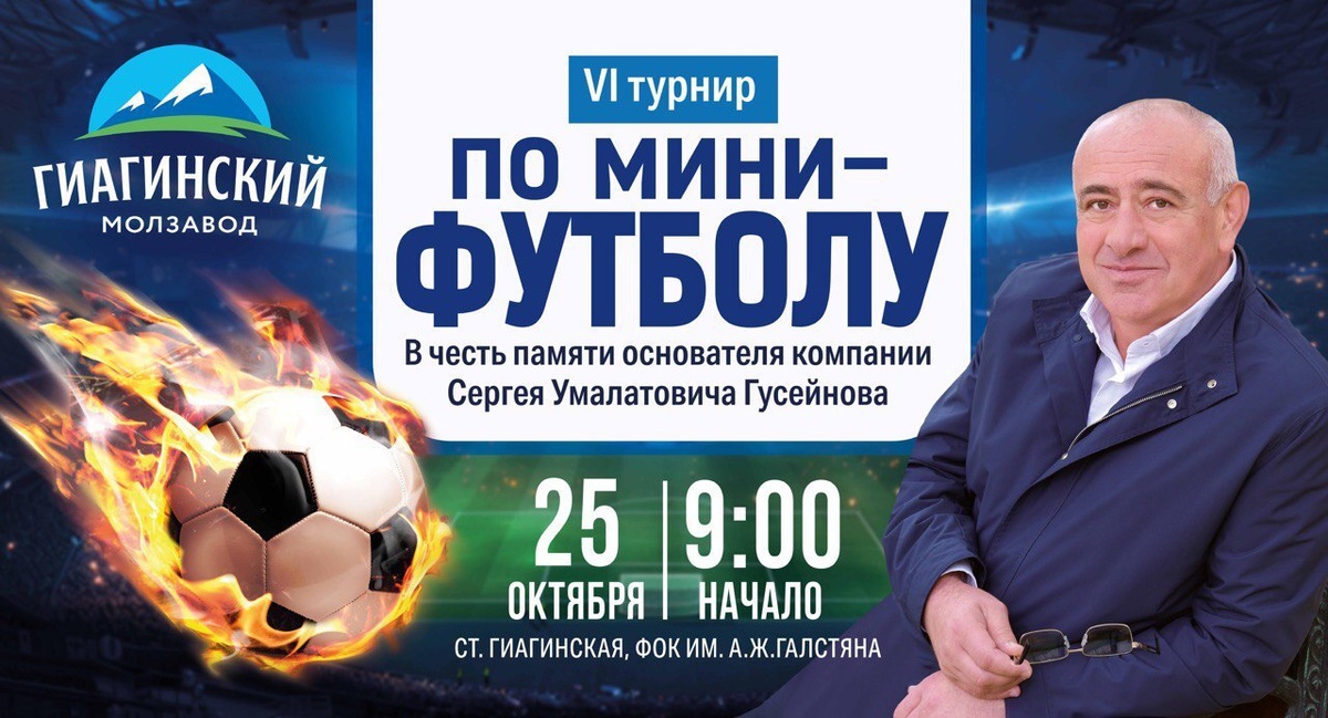 В станице Гиагинской пройдет турнир по мини-футболу памяти Сергея Умалатовича Гусейнова. Мероприятие состоится 25 октября в физкультурно-оздоровительном комплексе им. Арсена Галстяна. Приглашаются жители и гости Гиагинского района. #Гиагинскийрайон