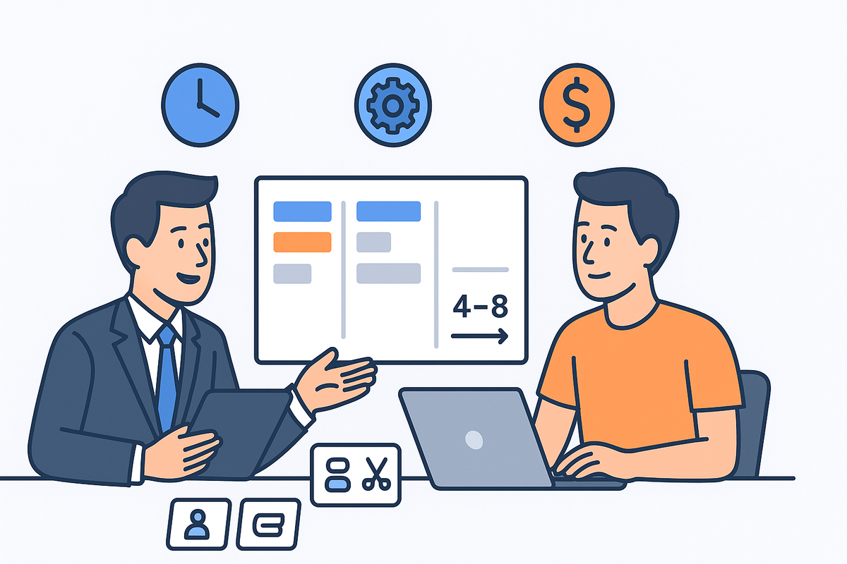 Проблема знакома всем: бизнес требует «быстро и качественно», разработка отвечает «нам нужно время», менеджеры обсуждают сроки и в конце концов все устали от вечного вопроса «когда будет готово?». Это не просто технический или продуктовый конфликт — это проблема коммуникации входных данных, критериев успеха и правил компромиссов. Ниже — детальная инструкция, которую можно внедрить шаг за шагом. Почему: Одна цифра воспринимается как обещание. Это вызывает разочарование при изменениях. Что сделать: Почему: Фраза «сделайте быстрее» не описывает, что именно готов пожертвовать бизнес — временем, функционалом, качеством или бюджетом. Как: Практическое правило: выбор опции должен быть документирован: кто принял решение, какие компенсации согласованы. Короткий синк (еженедельно, 15–30 минут): текущий статус, топ-2 риска, блокеры, требуемые решения. Формат — продукт + представитель бизнеса + техлид. Цель — дать прозрачную картину препятствий, а не детализировать прогресс задач. Дорожная карта