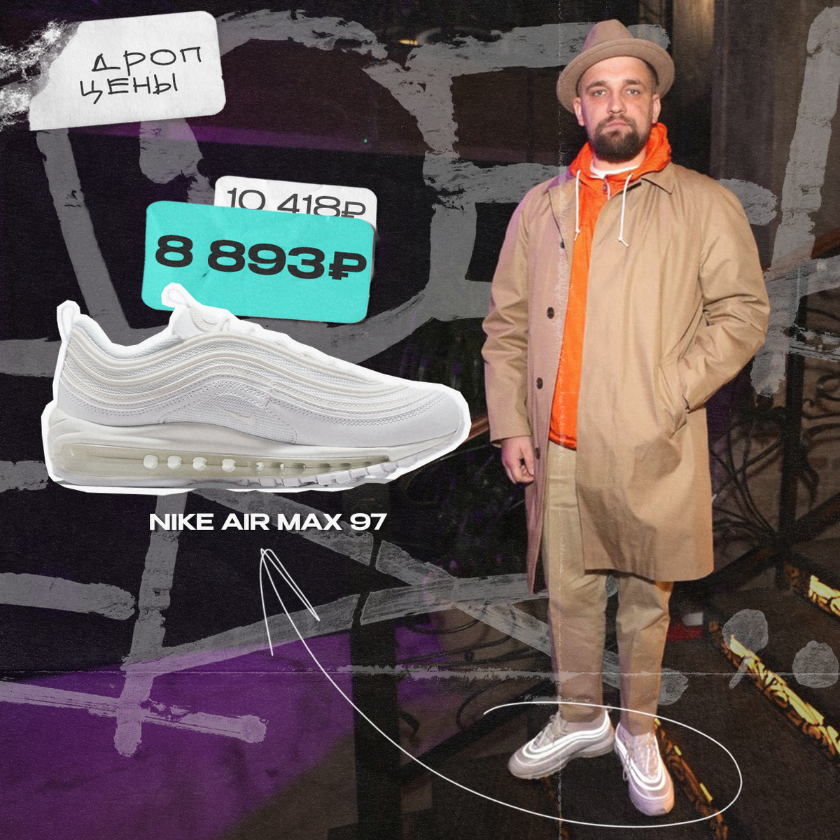 Один из самых востребованных артистов страны знает толк не только в поиске новых талантов, но и в кроссовках. Мы тоже при любом удобном случае выбираем Nike Air Max 97 — реально нестареющая модель. Кроссовки, как у Басты, в «Дроп ценах», стоимость актуальна только сегодня. Nike Air Max 97, цена от 8 893₽* (вместо 10 418₽) *стоимость может изменяться в зависимости от курса и размера Больше интересного на нашем сайте POIZON