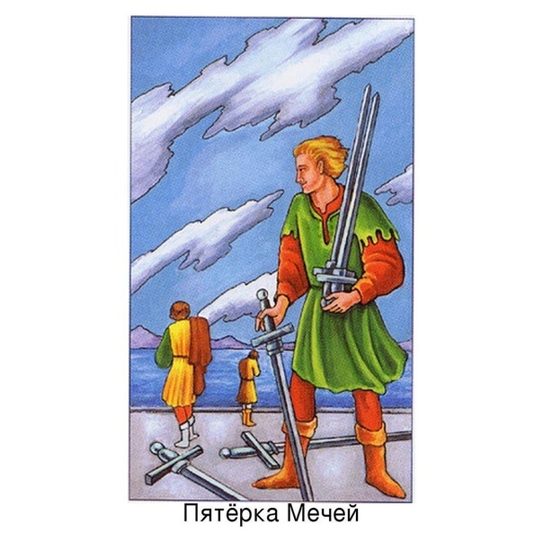В чем положительное значение 5 мечей: по ней мы решаемся дать отпор, нападая для собственной защиты или же просто идем воевать ради определенной цели. В ряде ситуаций требуются именно такие действия, без раздумий и оглядки на приличия.