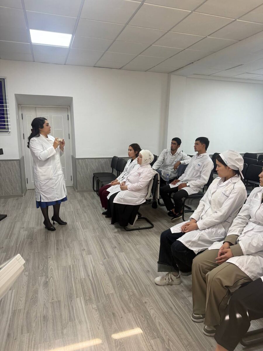 🔺Toshkent davlat tibbiyot unversiteti Surdotarjimonlik talabalari: 🔺 Pedagogika va psixologiya kafedrasi mudiri R.N.Melibayeva,hamkorlik ishlari bo'yicha ma'sul: M.A.Boboyeva kafedra o'qituvchilari hamda G.S.Xaydarova, Y.K.Narmetova, Y.K.Narmetova, J.M.Atamuratova "Toshkent davlat tibbiyot universiteti" klinikasida surdotarjimonlar uchun olib borilgan master klassdan lavhalar. 🔺 Tashrif davomida kafedra professor-o‘qituvchilari texnikum o‘qituvchilari hamda surdotarjimonlarga maxsus apparatlar va texnik vositalardan foydalanish bo‘yicha master-klass o‘tkazdilar. Ushbu master-klassda surdotarjimonlarga zamonaviy qurilmalar va uskunalarni samarali ishlatish hamda o‘quv jarayonida qo‘llash bo‘yicha amaliy ko‘nikmalar berildi. 🔺Ushbu master-klassda surdotarjimonlarga ovoz va imo-ishoralar o‘rtasidagi samarali aloqa uchun mo‘ljallangan texnika vositalarini qo‘llash, ularning imkoniyatlarini to‘liq ishga solish hamda o‘quv jarayonida amaliy qo‘llanishini ta’minlash bo‘yicha batafsil t