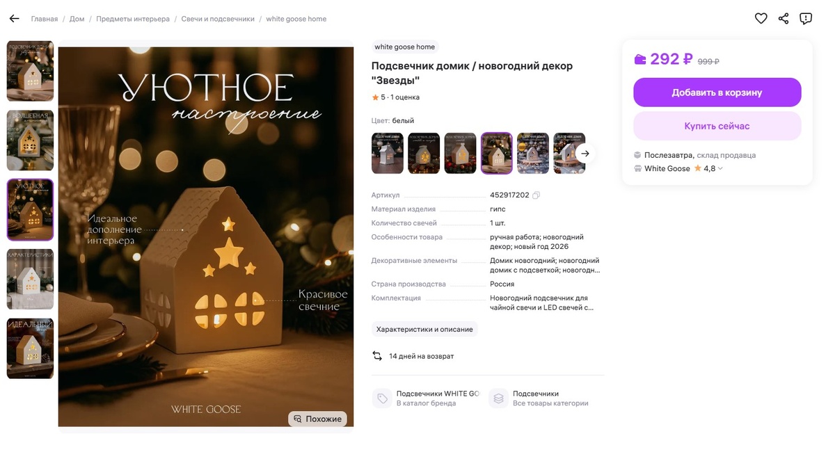 💬 Важно: я ничего не навязываю, просто делюсь личным опытом. Эта подборка - для вдохновения и хорошего настроения. Ну вот, друзья, зима уже заглядывает в окна, а вместе с ней - предновогодняя суета. Вы знаете это чувство, когда идёшь по дому и думаешь: «Чего-то не хватает… этого особого, сказочного ощущения уюта»? У меня так было прошлой зимой. Хочется, чтобы дом светился теплом, пахло хвойными ветками, мягкий свет свечи играл на стенах… и я решила, что пора готовиться к Новому году заранее. Сегодня поделюсь с вами своими находками с маркетплейса, которые превратили обычный вечер в маленькую домашнюю сказку. Настраивайтесь на уютный вайб, берите чашку горячего чая и поехали! Начну с того, что купила я себе декоративный белый домик-подсвечник . И знаете, это любовь с первого взгляда. Он аккуратно выполнен, а когда зажигаешь свечу внутри, мягкий свет пробивается через окошки и звездочки, превращая комнату в мини-версию рождественского городка. Я поставила домик на подоконник и каждый ве