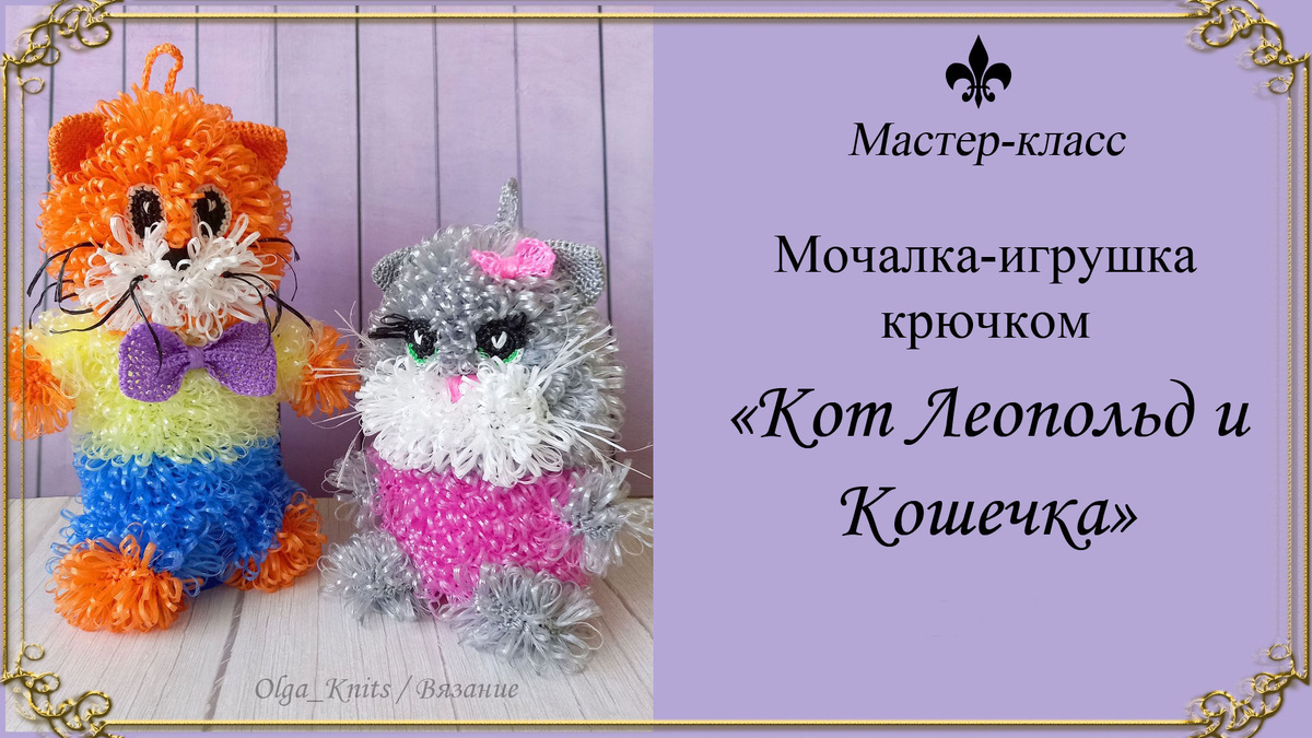 Мочалка-игрушка крючком "Кот Леопольд и Кошечка" / МАСТЕР-КЛАСС