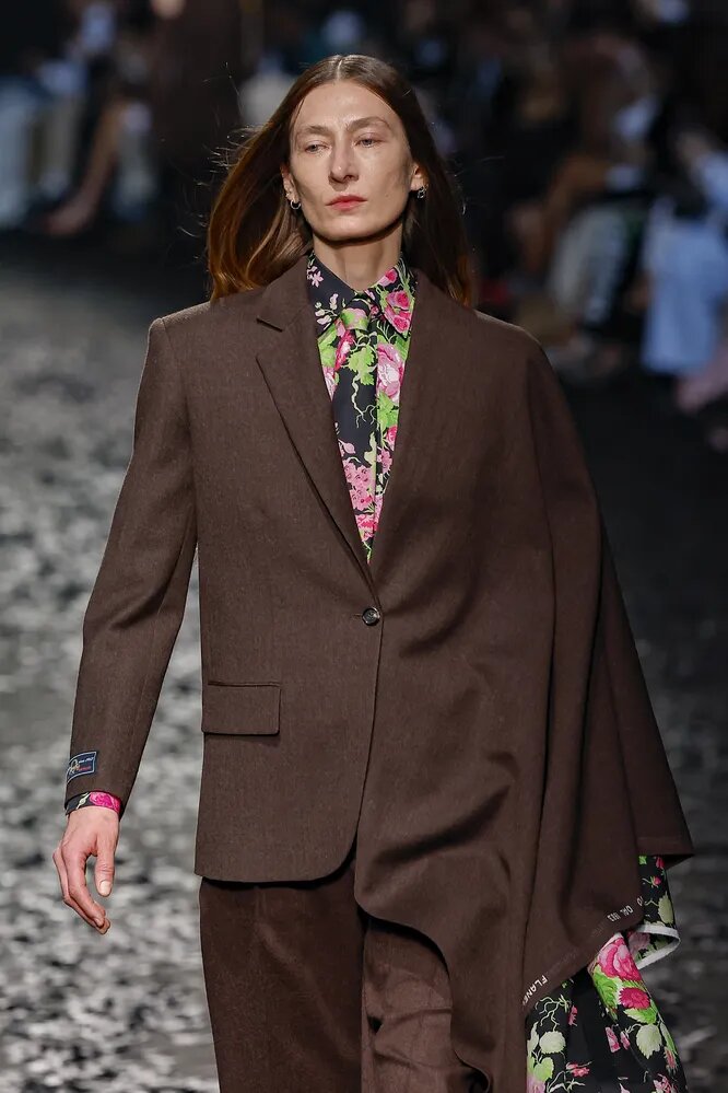 Галстук на показах Schiaparelli, Givenchy, Saint Laurent стал символом этой игры: он больше не про «копирую мужской образ», а про «делаю символ своим». Это акцент, который добавляет вертикаль силуэту и фокусирует внимание на лице.