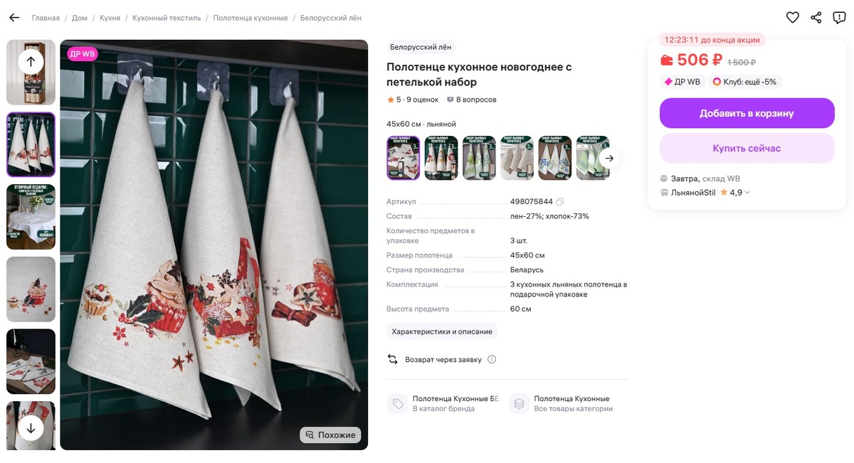 💬 Важно: я ничего не навязываю, просто делюсь личным опытом. Эта подборка - для вдохновения и хорошего настроения. Когда за окном тихо падает снег, а в доме пахнет выпечкой и корицей - это значит, что приближается любимое время. Время, когда хочется доставать из коробок уютные мелочи, зажигать свечи и готовить чай в красивом заварнике. Я каждый год начинаю подготовку к праздникам именно с кухни - ведь именно здесь живёт настроение Нового года. Первое, с чего я начинаю декор - текстиль. Три мягких полотенца из льна и хлопка не просто украшают кухню, а будто впитывают в себя атмосферу праздника. Они приятно ложатся в руку, быстро сохнут и не теряют свежести даже после множества стирок. Мне нравится, что у каждого полотенца есть петелька, повесил на крючок, и кухня сразу выглядит аккуратнее. А нежные оттенки ткани добавляют света даже в пасмурный день. Приятная мелочь, которая каждый раз напоминает, что праздник - это в первую очередь уют. Артикул: 498075844 Невозможно представить Новый