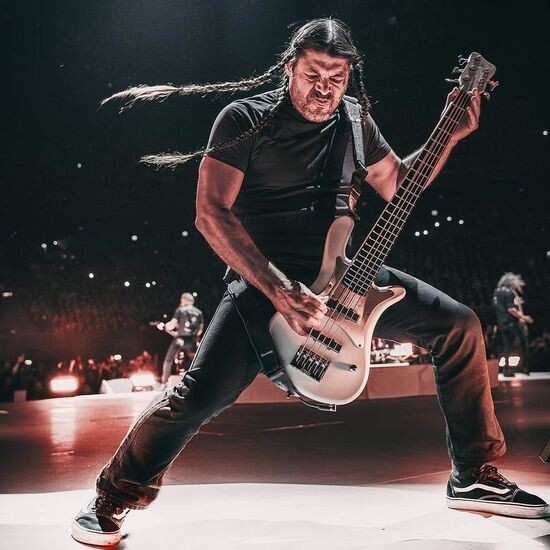 Роберт Трухильо — американский бас-гитарист мексиканского происхождения, известный своей мощной игрой. Он родился 23 октября 1964 года в Санта-Монике, Калифорния. Творческий путь Интерес к музыке Роберту привила мать, познакомившая его с творчеством Марвина Гэя, Джеймса Брауна и других великих артистов. Свою карьеру он начинал, играя каверы на Black Sabbath, Ozzy Osbourne и Led Zeppelin в гаражных группах. Хотя Трухильо получил джазовое образование и мечтал о работе студийного музыканта, его сердце всегда принадлежало року и металу. Это привело его к сотрудничеству с Оззи Осборном, в период которого была создана экспериментальная группа Mass Mental. Попробовал себя Роберт и в актёрском мастерстве, сыграв несколько небольших ролей в кино и на телевидении. Эпоха Metallica Переломным моментом в его карьере стало 24 февраля 2003 года, когда он официально стал бас-гитаристом Metallica. В составе группы он принял участие в записи альбомов «Death Magnetic», «Hardwired… to Self-Dest