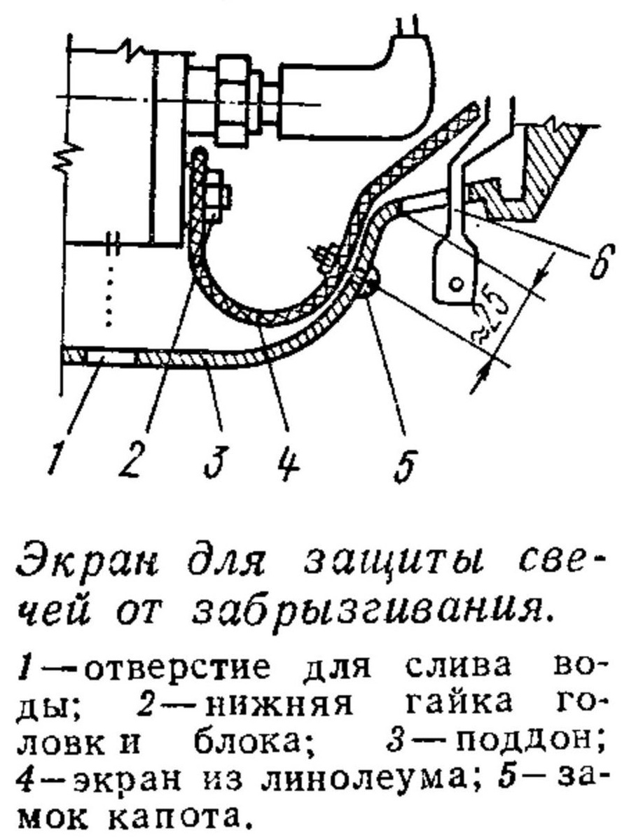 Лодка у меня короткая (3,25 м) и при «вытаскивании» одного тяжелого воднолыжника возникает большой дифферент на корму, нередко заливает свечи. Из кусочка линолеума я вырезал пластинку-экран и закрепил ее винтом М4х5 в задней части поддона. После этого я практически забыл о том, что свечи может заливать! Ведь в основном на нижнюю свечу попадают брызги через отверстия для поводка замка и слива охлаждающей воды. Теперь же брызги только ударяют в экран и через те же отверстия вытекают обратно. ⚓️ Мотолодки, катера и яхты