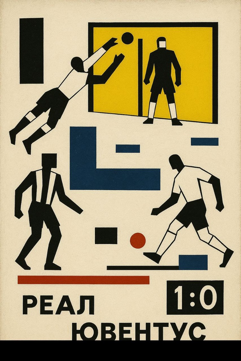 В матче Реала и Ювентуса в основном мадридцы наседали на ворота итальянцев, хотя и у "старой синьоры" были моменты. Но лучше всех играли вратари. И все же испанцы нашли момент для гола - 1:0 в пользу "сливочных". В стиле Малевича.